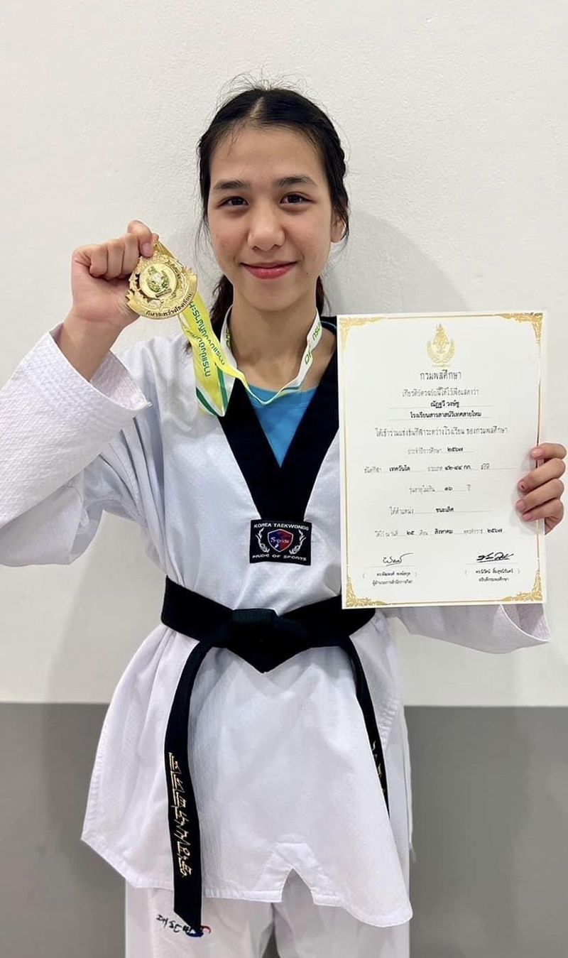 "แมตช์แรกที่ลงสนาม หนูคว้าเหรียญทองได้เลยค่ะ 55 ซึ่งก็ตกใจเหมือนกัน จำไม่ได้ด้วยซ้ำว่ารายการอะไร รู้แต่ว่าลงไปแข่งขันแล้วต้องเตะคู่ต่อสู้ ซึ่งก็ลงไปเตะตามใจตัวเอง แต่สุดท้ายเอาชนะและคว้าเหรียญทองได้"