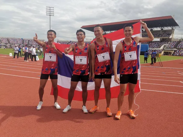 ด้านทีมวิ่งผลัด 4X400 เมตรชาย ทีมไทยที่มี นนท์ธวัช ภักดีจิตร, คุณภัทร ไกรจันทร์, ปฏิพล สัมณีย์ และ ศราวุฒิ นวลศรี คว้าเหรียญทองเพิ่มให้ทัพรองเท้าตะปูจากแดนสยามอีก 1 เหรียญ ด้วยสถิติ 3.14.39 น. พร้อมกับทำให้ “เบสท์” ศราวุฒิ นวลศรี คว้าคนเดียวในวันแรกถึง 2 เหรียญทอง ทั้งวิ่งผลัด 4X100 เมตรชายและผลัด 4X100 เมตรชาย ด้านเหรียญเงินเป็นของมาเลเซีย 3.18.19 น.