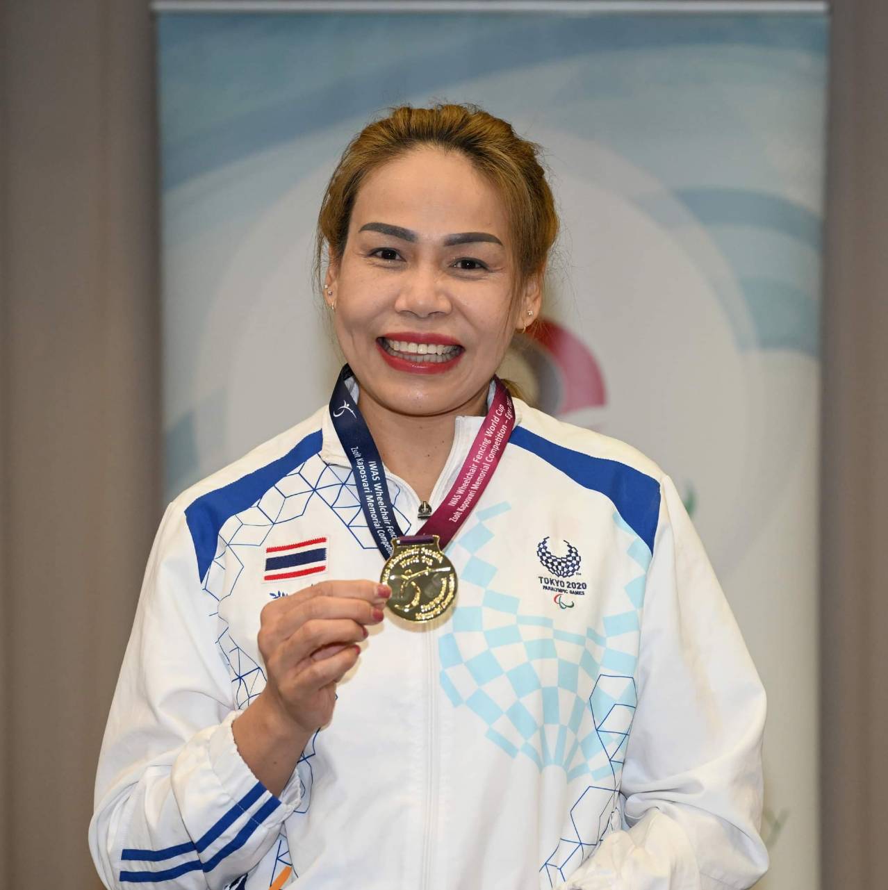 "แวว" สายสุนีย์ จ๊ะนะ นักกีฬาฟันดาบคนพิการทีมชาติไทย เอาชนะ จุง เหนียน ผิง จากฮ่องกง 15-5 คะแนน คว้าเหรียญทองประเภทดาบฟอลย์ คลาสบี มาครองได้สำเร็จ