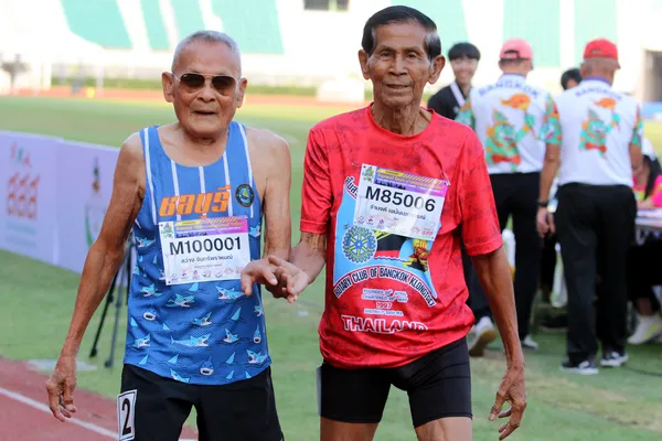 คุณตาสว่าง จันทร์พราหมณ์ นักกีฬาอายุ 105 ปี จากชมรมกรีฑาผู้สูงอายุจังหวัดชลบุรี คว้า 2 เหรียญทอง โดยทุ่มน้ำหนัก ทำสถิติได้ 3.85 เมตร ส่วนวิ่งร้อยเมตร ทำได้ 33.93 วินาที