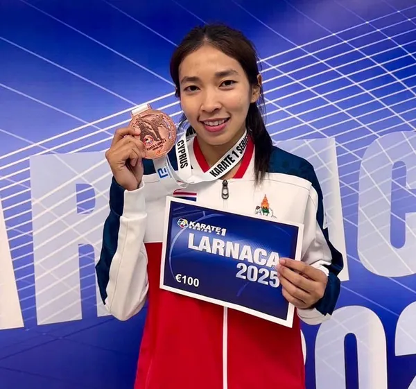 "ไอซ์" ชัญญานุช ชีพเป็นสุข นักคาราเต้สาวไทย สร้างผลงานเยี่ยมกรุยทางเข้าไปคว้าเหรียญทองแดง ประเภทต่อสู้ รุ่น 50 กก.หญิง ในการแข่งขันคาราเต้ คาราเต้ วัน ซีรีส์ เอ ลาร์นากา 2025 ที่ประเทศไซปรัส มาครอง