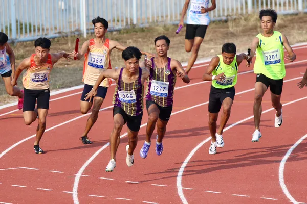 ด้านวิ่งผลัด 4x100 เมตรชาย ทีมไต้ฝุ่นหนุ่มจาก จ.พัทลุง แชมป์เก่า ที่นำทีมมาโด วีรยุทธ แดนขนบ ลมกรดเยาวชนทีมชาติ พร้อมด้วย ธีรภัทร อนันตรัตนกุล, ณัฐพล สุขเกษม และ ต่อสกุล ซิ่น ช่วยกันเร่งสปีดแซงคู่แข่งในช่วงสุดท้าย ก่อนทะยานเข้าเส้นชัยเป็นทีมแรก ด้วยเวลา 41.40 วินาที คว้าเหรียญทองไปครอง ส่วนเหรียญเงิน เป็นของ ชลบุรี ที่ประกอบด้วย ชุติทัศน์ พฤกษ์สรนันทน์, ณัฐพล ใจมั่น, ศุภากร กองเกิน และ ปิยะวัฒน์ อ่อนจงไกร ทำเวลาได้ 41.41 วินาที ส่วนเหรียญทองแดง เป็นของ นครศรีธรรมราช ที่มี พชรพล ลอยลม, ธีรพงค์ สงกลิ่น, ณครัตน์ ศรีใย และ อัฟฮัม มูซอ ทำเวลาได้ 41.51 วินาที