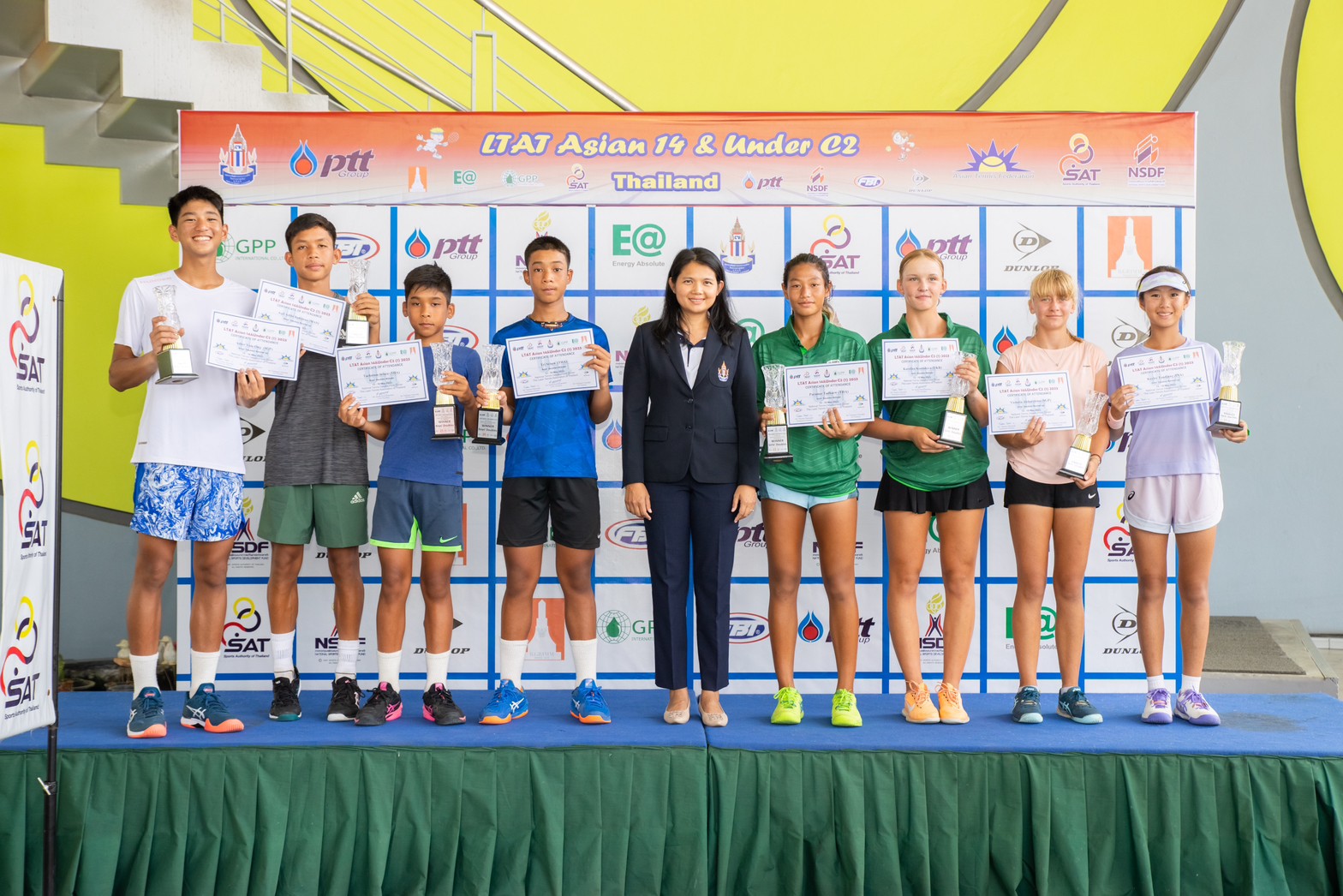 การแข่งขันเทนนิสเยาวชน รุ่นอายุไม่เกิน 14 ปี เก็บคะแนนสะสมเอเชีย ระดับเกรด 2 รายการ "แอลทีเอที เอเชี่ยน โฟร์ทีน แอนด์ อันเดอร์ 2023" ครั้งที่ 1 ที่ศูนย์พัฒนากีฬาเทนนิสแห่งชาติ เมืองทองธานี จ.นนทบุรี เมื่อวันที่ 19 พ.ค.66 แข่งขันเป็นวันสุดท้าย โดย น.ส.ขนิษฐา ศรีตะวัน กรรมการอำนวยการสมาคมกีฬาลอนเทนนิสแห่งประเทศไทย ในพระบรมราชูปถัมภ์ เป็นประธานมอบรางวัล