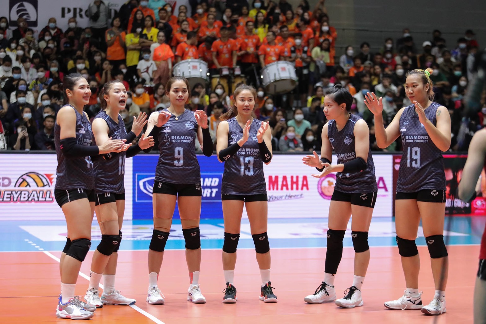 นักตบสาว "แชมป์เก่า" สาวไดมอนส์ฟู้ด ย้ำแค้นสาว"ย่าโม" เก็บชัยนัดที่ 10ติด หลังเปิดเกมโดนขึ้นนำไปก่อน 2-1 เซต แต่กลับมาตีเสมอ 2-2 เซต ต้องฏีกาในเซตที่ 5 และเป็นไดมอนส์ฟู้ดที่รุกแน่นอนกว่าปิดแมตซ์เอาชนะ 3-2 เซต นำต่อจ่าฝูงคะแนนลูกยางไทยแลนด์ลีก