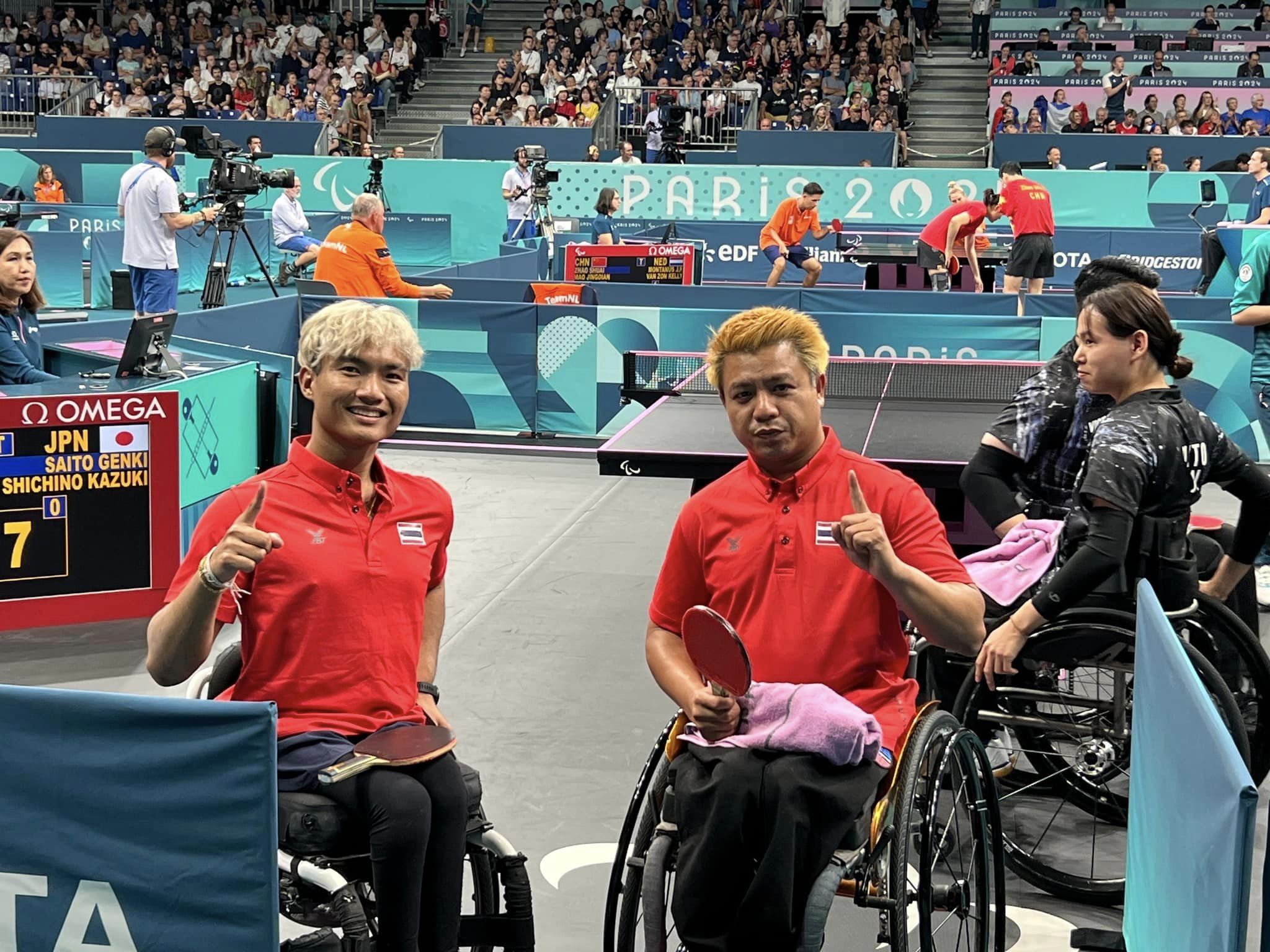 การแข่งขันเทเบิลเทนนิส พาราลิมปิก ประเภทชายคู่ คลาส MD8 "ขวด" วันชัย ชัยวุฒิ และ "เป้ " ยุทธจักร กลิ่นบานชื่น คู่มือ 1 ของการแข่งขันครั้งนี้ แข่งในรอบก่อนรองชนะเลิศ ตบ เอาชนะ เกงกิ ไซโตะ กับ คาซึกิ ชิชิโนะ คู่มือ 7 จากญี่ปุ่น 3 เกมรวด 11-4, 11-6 และ 11-7