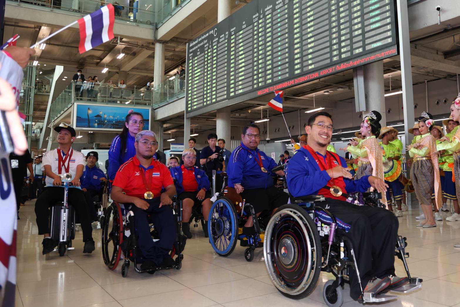 นายสรวงศ์ เทียนทอง รัฐมนตรีว่าการกระทรวงการท่องเที่ยวและกีฬา , ดร.ก้องศักด ยอดมณี ผู้ว่าการกีฬาแห่งประเทศไทย และ ร.ท.ณัยณพ ภิรมย์ภักดี ประธานคณะกรรมการพาราลิมปิกแห่งประเทศไทย เดินทางต้อนรับคณะนักกีฬาและเจ้าหน้าที่พาราลิมปิก ครั้งที่ 17 ปารีสเกมส์ 2024 คณะแรกที่เดินทางมาถึงสนามบินสุวรรณภูมิ วันที่ 10 ก.ย.67 ตั้งแต่เวลา 05.55 น.โดยมีครอบครัวนักกีฬา กองเชียร์เดินทางมารอต้อนรับ ทัพนักกีฬาคนพิการทีมชาติไทยเป็นจำนวนมาก