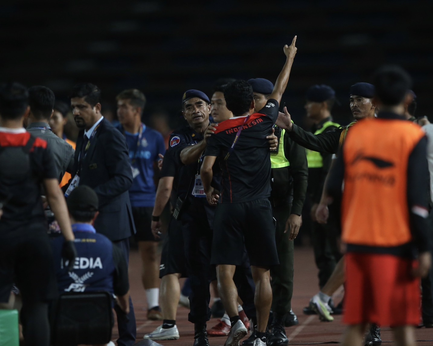 แต่หักมุมกว่าตรงที่ อินโดฯ ขึ้นนำอีกครั้งอย่างรวดเร็วเพียงนาทีแรกๆ ของการต่อเวลา แล้วก็ตะลุมบอนกันซะอย่างนั้นจนพังไปทั้งแถบ !!!