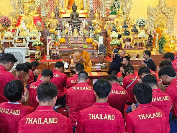 พ.ต.อ. ดวงโชติ สุวรรณจรัส นำนักกีฬาเบสบอลชายทีมชาติไทยเข้ากราบพระวัชรญาณมุนี วัดเทพสรธรรมาราม จ.ปทุมธานี รับโอวาทและตะกรุดเป็นสิริมงคล ก่อนลงแข่งซีเกมส์ ครั้งที่ 33 ระหว่างวันที่ 5–14 ธ.ค. 2568 ในสองสนามหลัก