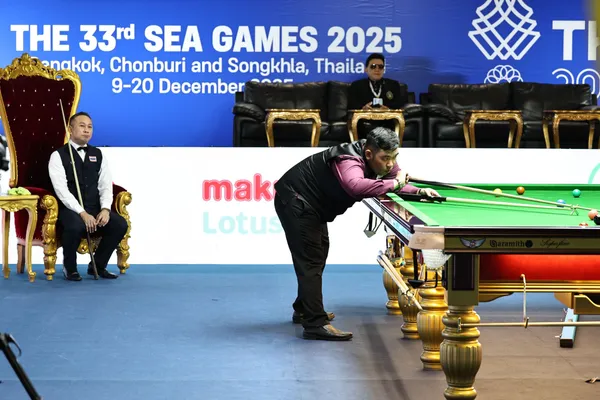 การแข่งขันกีฬาซีเกมส์ในชนิดกีฬาบิลเลียดสปอร์ตที่ธันเดอร์โดม เมืองทองธานี เมื่อวันที่ 10 ธ.ค.68 ซึ่งเป็นการดวลคิววันแรก