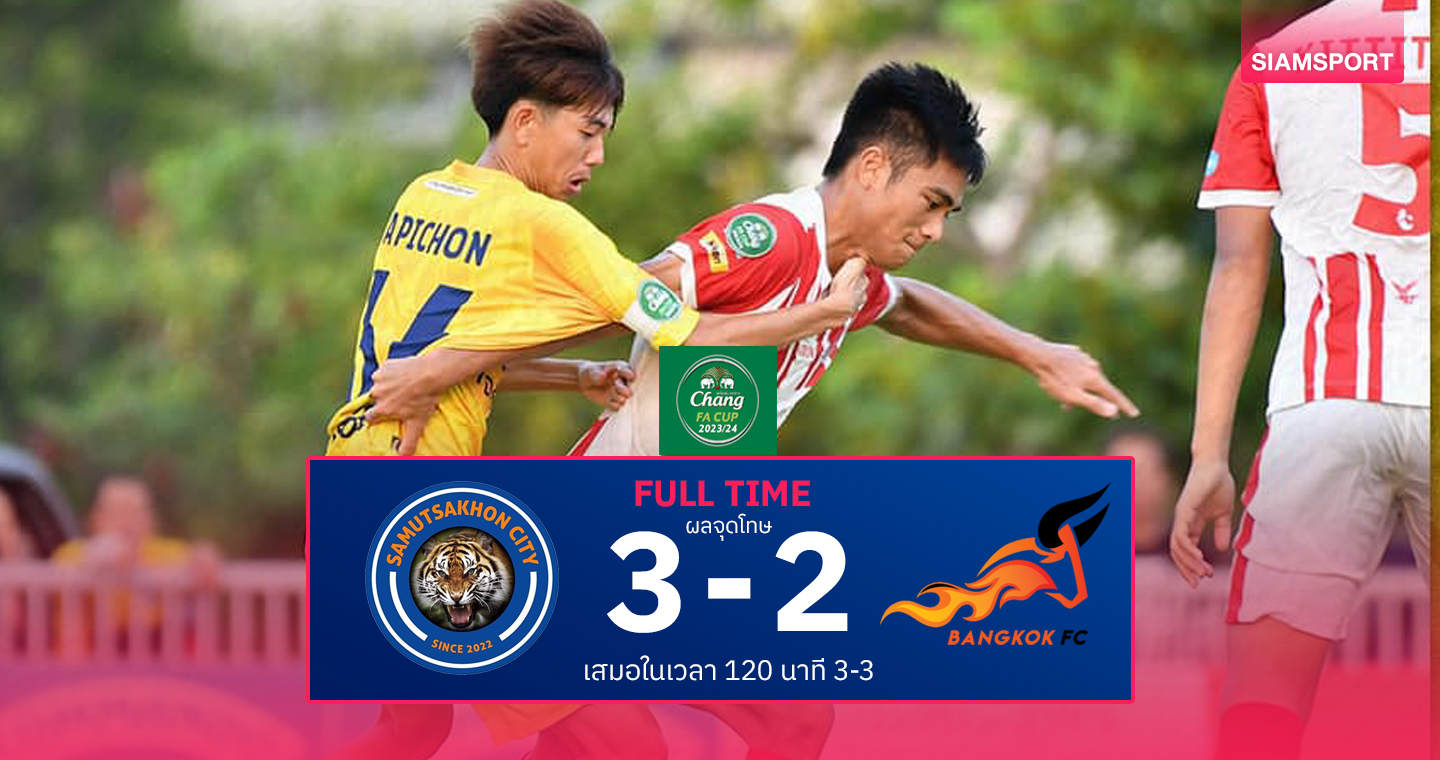 บางกอก เอฟซี เซ็งร่วง เอฟเอฯ! นำ2ครั้งปิดเกมไม่ลง โดน สมุทรสาคร แม่นโทษ ฉลุย รอบรองฯ