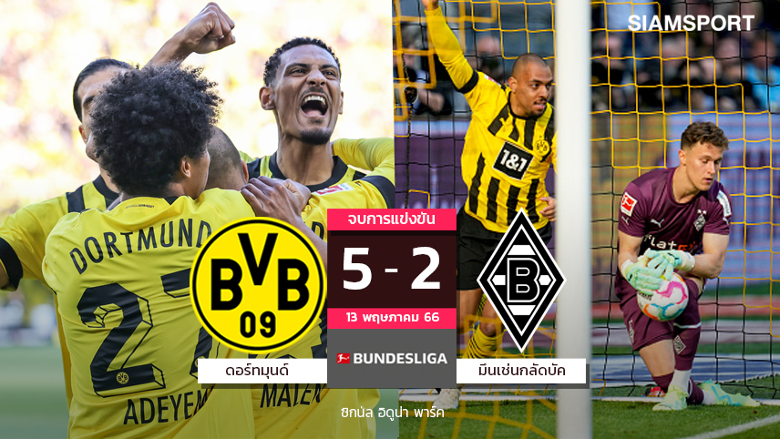 ดอร์ทมุนด์ 10 คน เฮหืดจับ รั้งที่ 5 "มาร์เซล ซาบิตเซอร์"เบิ้ล บุกเชือดกลัดบัคหวิว