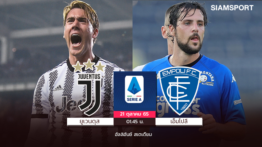 ยูเวนตุส เล็งเฮสองนัดติด "วลาโฮวิช" เดินหน้าซัด เอ็มโปลี ล่าสามแต้ม