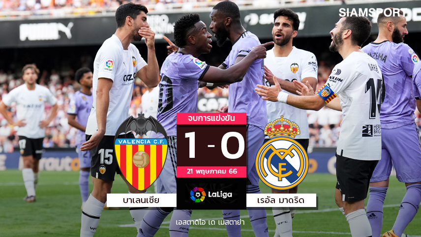 เรอัล มาดริด โคตรเซ็ง! ตะเพิด"วินิซิอุส"บุกแพ้ บาเลนเซีย โดน ตราหมี แซงยึดรองฝูง