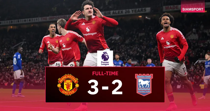 ผลบอล แมนยู พบ อิปสวิช : แม็กไกวร์ โขกชัย!ผี10คนโชว์ทีเด็ดเชือดม้าขาวขึ้นที่14